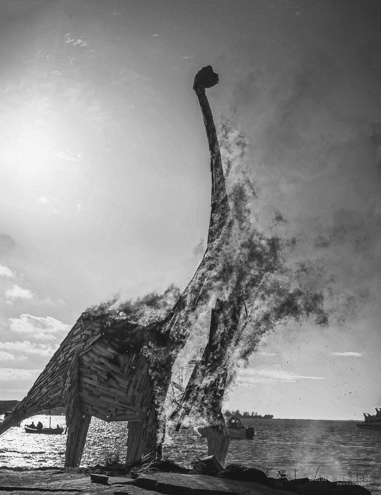 Tak til alle, der kiggede forbi. Både mens sprutten blev bygget på pladsen foran Nordkraft og da den blev sat i flammer til lyden af Shu-Bi-Dua i Fjordbyen.